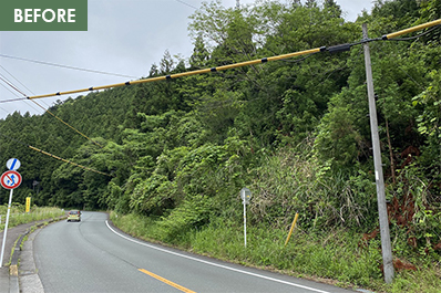伐採のプロ集団だから出来る事。支障木伐採、高所伐採等、森林整備の技術を駆使しながら地域の安全を守ります。